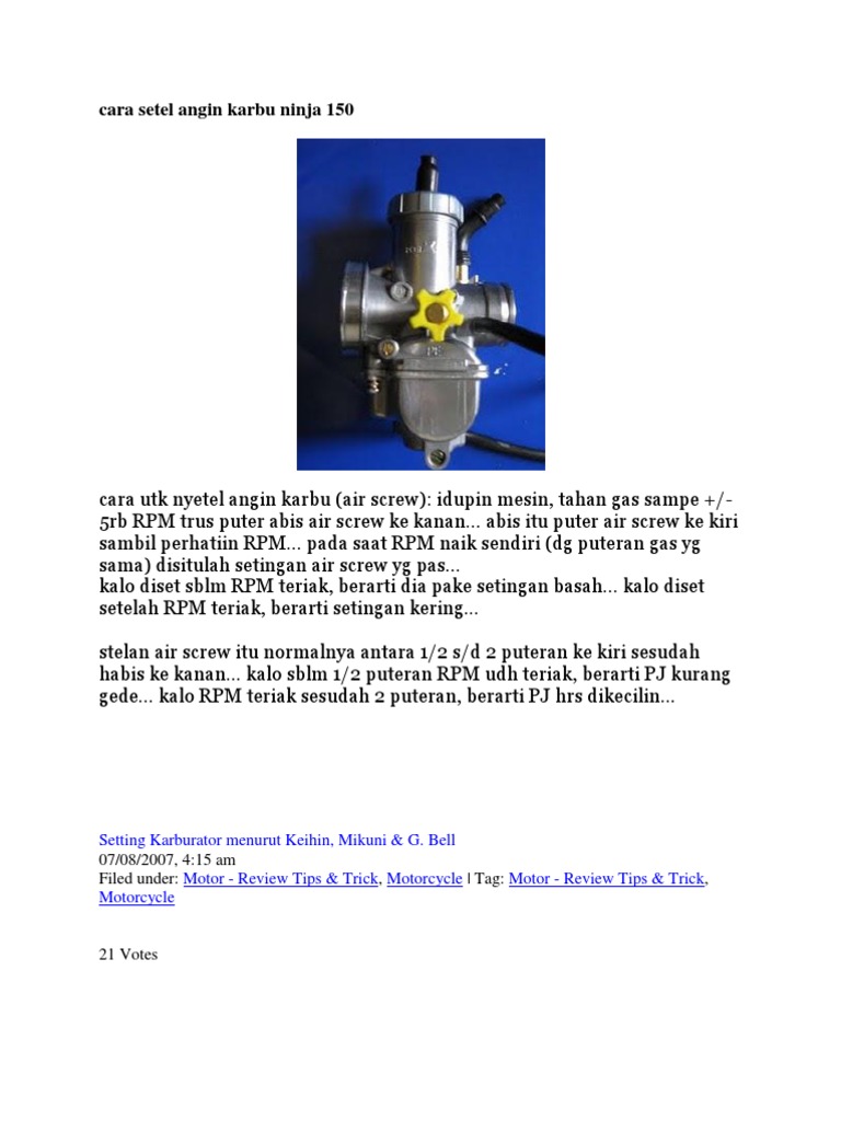 Cara Setel Angin Karbu Ninja 150 PDF